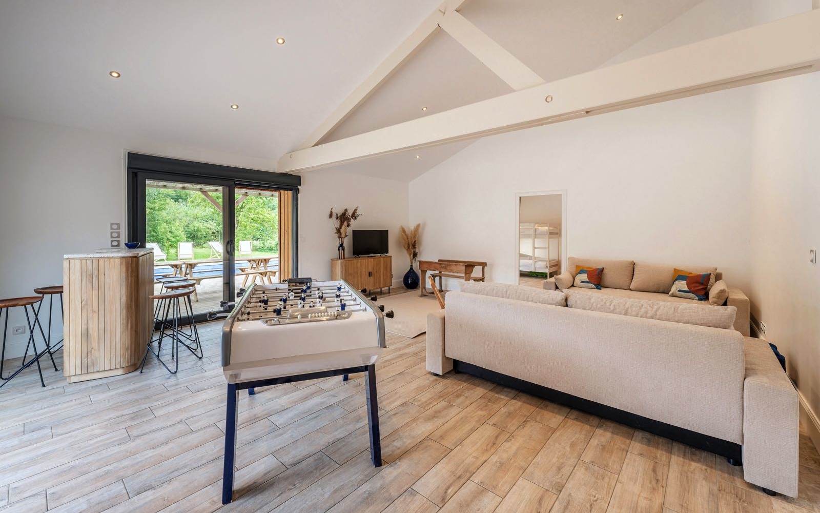 Maison magnifique tout confort posée au milieu de la nature, à deux pas de la forêt.Grands espaces intérieurs, idéal pour partager des moments conviviaux entre amis et parfaits pour les enfants (grande salle de jeux avec baby foot, livres…). Très beau jardin avec terrasse ombragée, bien adaptée aux repas en extérieur.Nous avons passé un très bon week-end entre amis avec nos enfants. Petits et grands ont tous été ravis.
